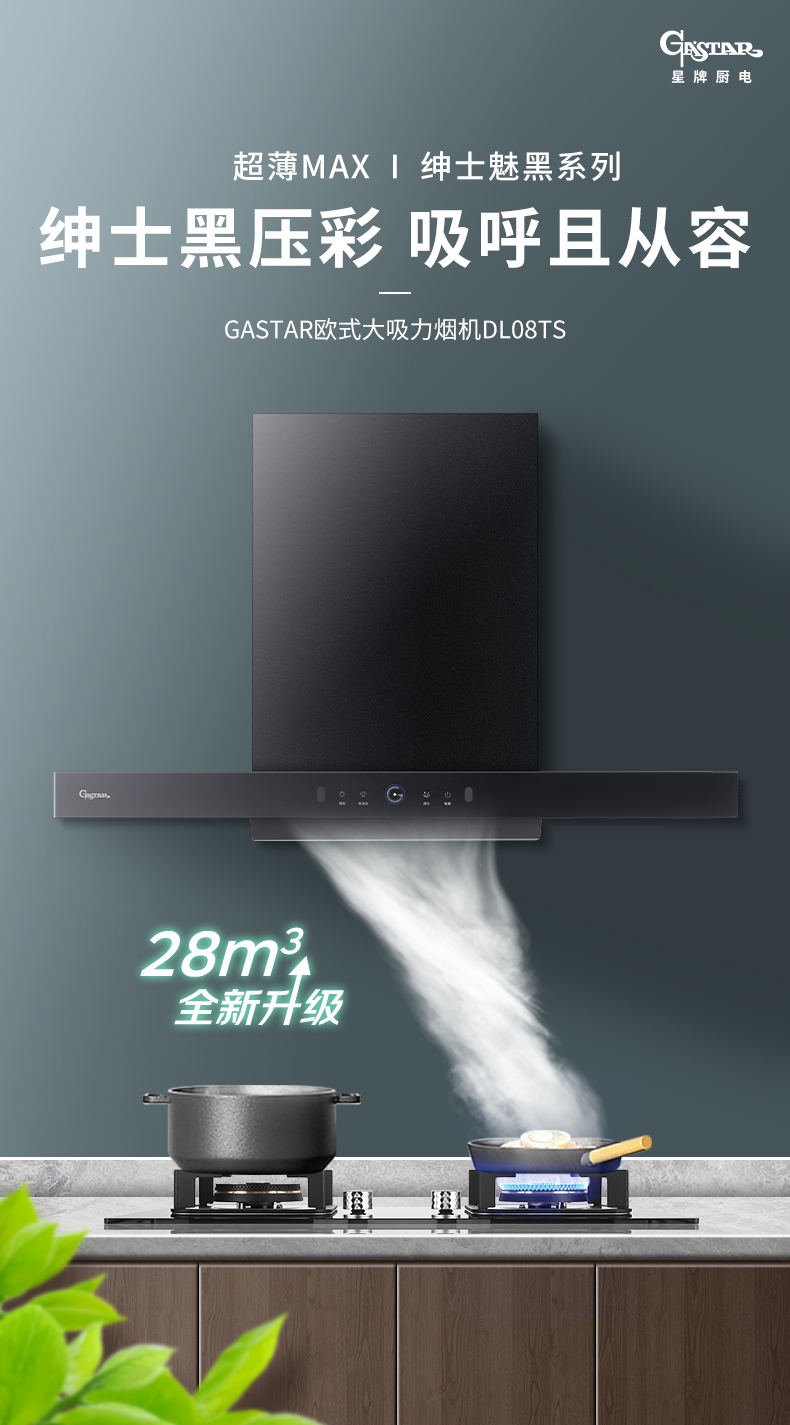 3、前额6cm超薄,45cm不碰头纵深,橱柜搭配精巧无压力